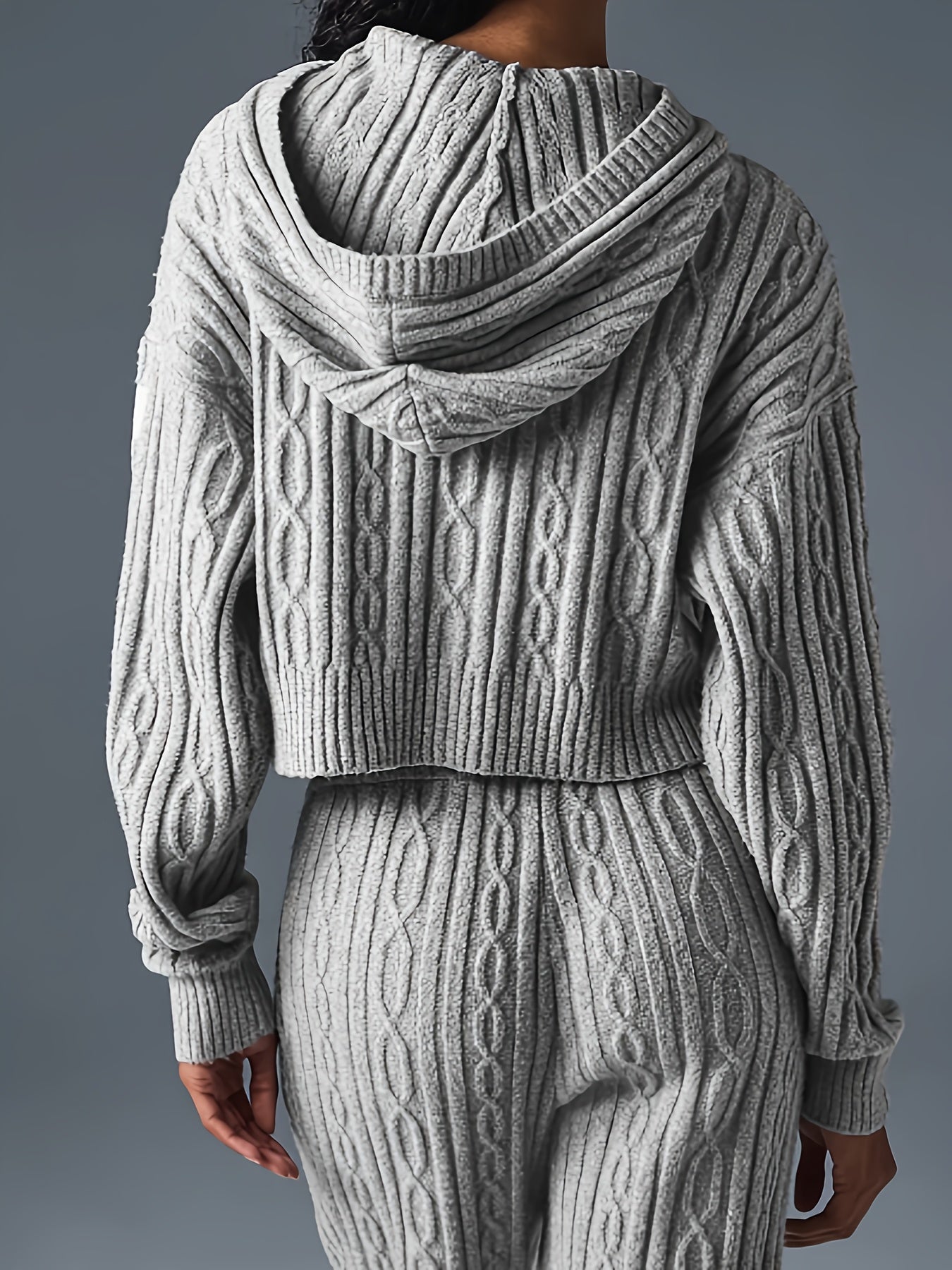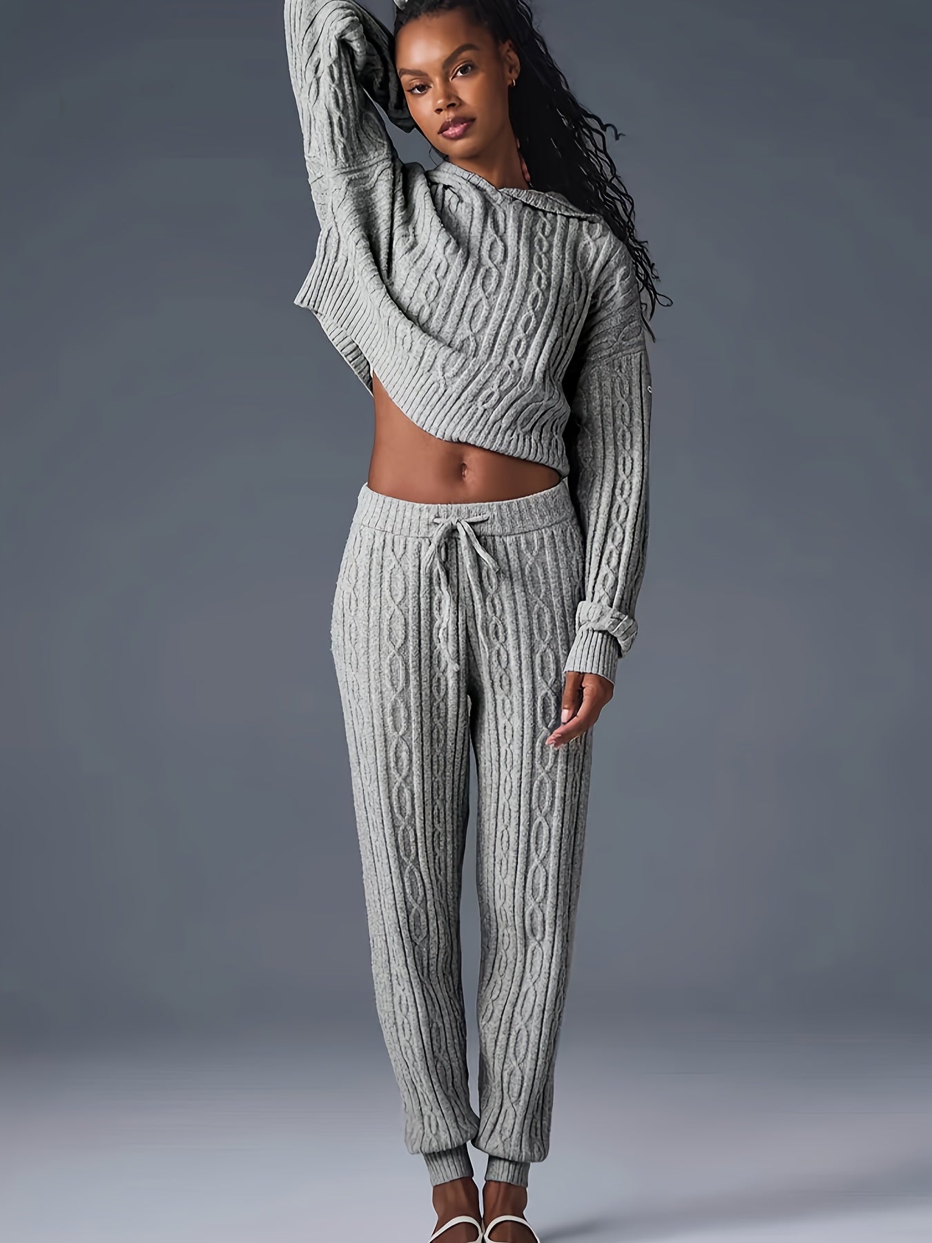 Adoptez un look moderne et confortable avec cet ensemble Ă capuche alliant douceur et chaleur đž. FabriquĂ© Ă partir dâun mĂ©lange de polyester, nylon et acrylique, il offre une texture tricotĂ©e souple, parfaite pour vos journĂ©es dĂ©tente ou vos sorties dĂ©contractĂ©es.