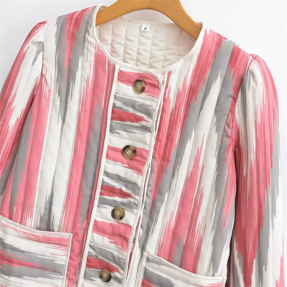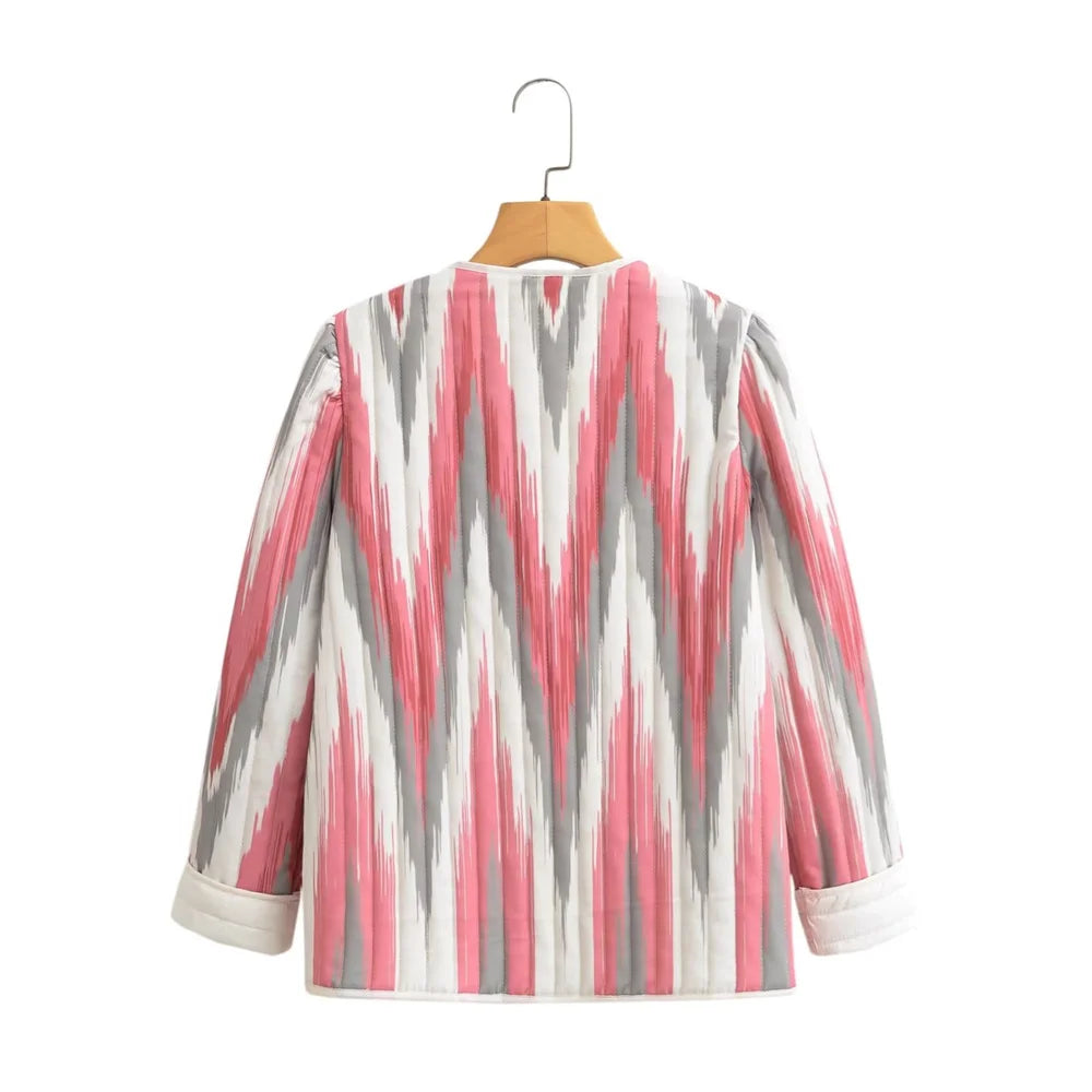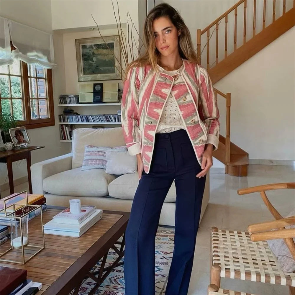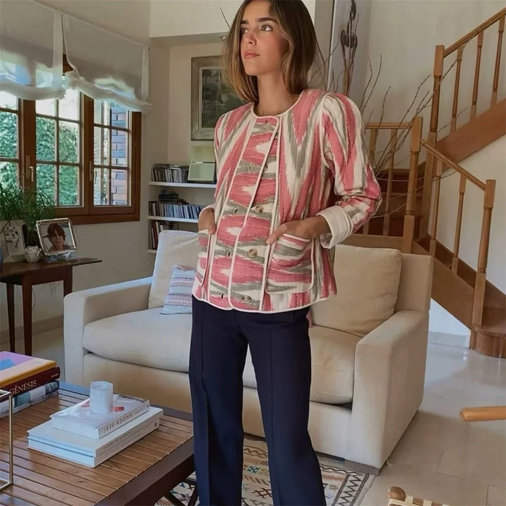 Adoptez un look d'automne stylé avec la veste Albertine. Cette veste courte en coton matelassé est un incontournable pour les fashionistas en quête d'un look chic et contemporain. Son imprimé floral apporte une touche de fraîcheur et de féminité, tandis que ses manches longues offrent un confort optimal.