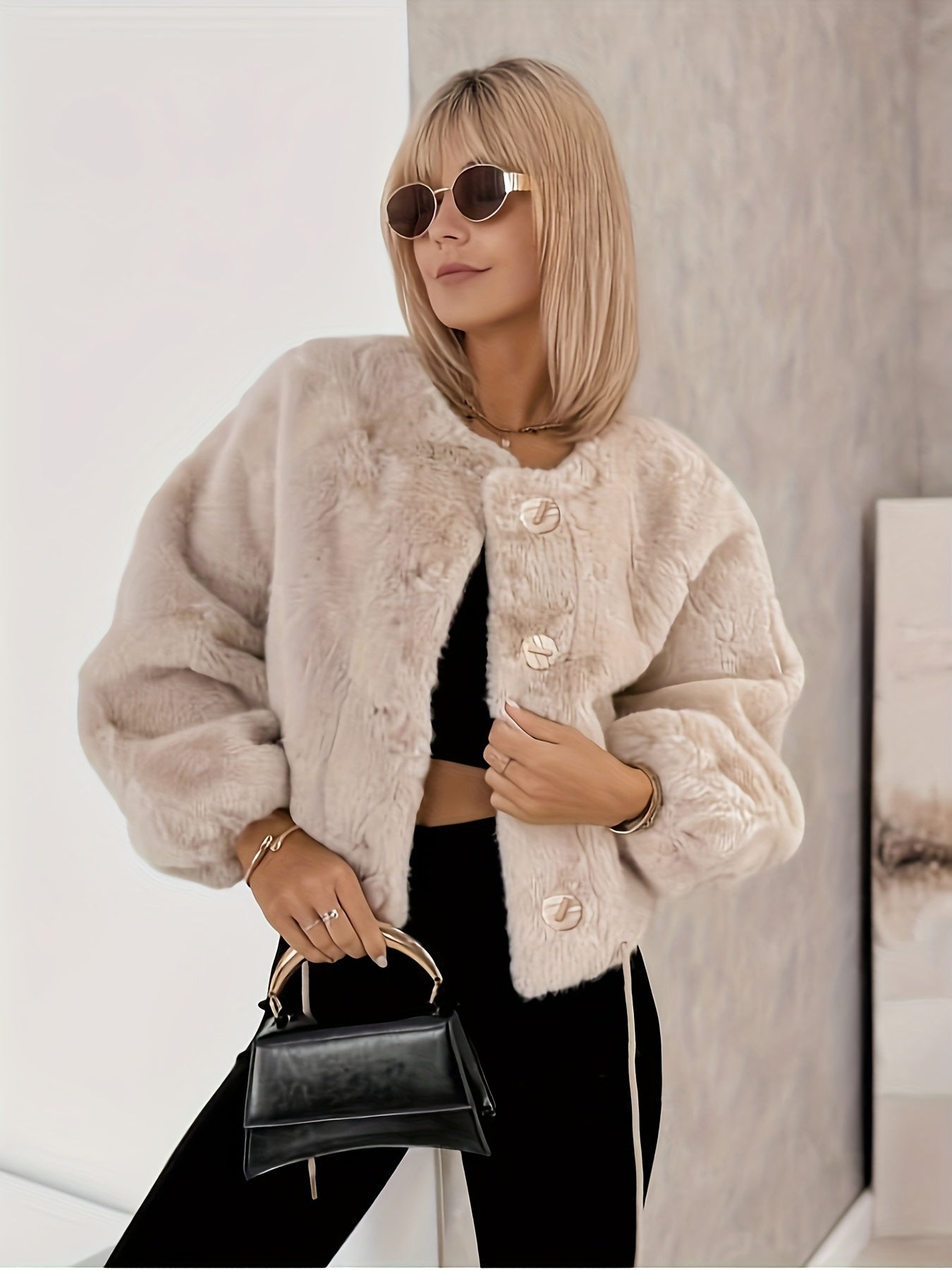 Affichez un look sophistiqué et confortable avec ce manteau élégant en fausse fourrure ✨. Conçu pour les saisons automne et hiver 🍂❄️, il combine un tissu non extensible en polyester, une doublure douce en polyester et une coupe ample pour un confort optimal. Les manches lanternes et le boutonnage simple apportent une touche raffinée et tendance.
